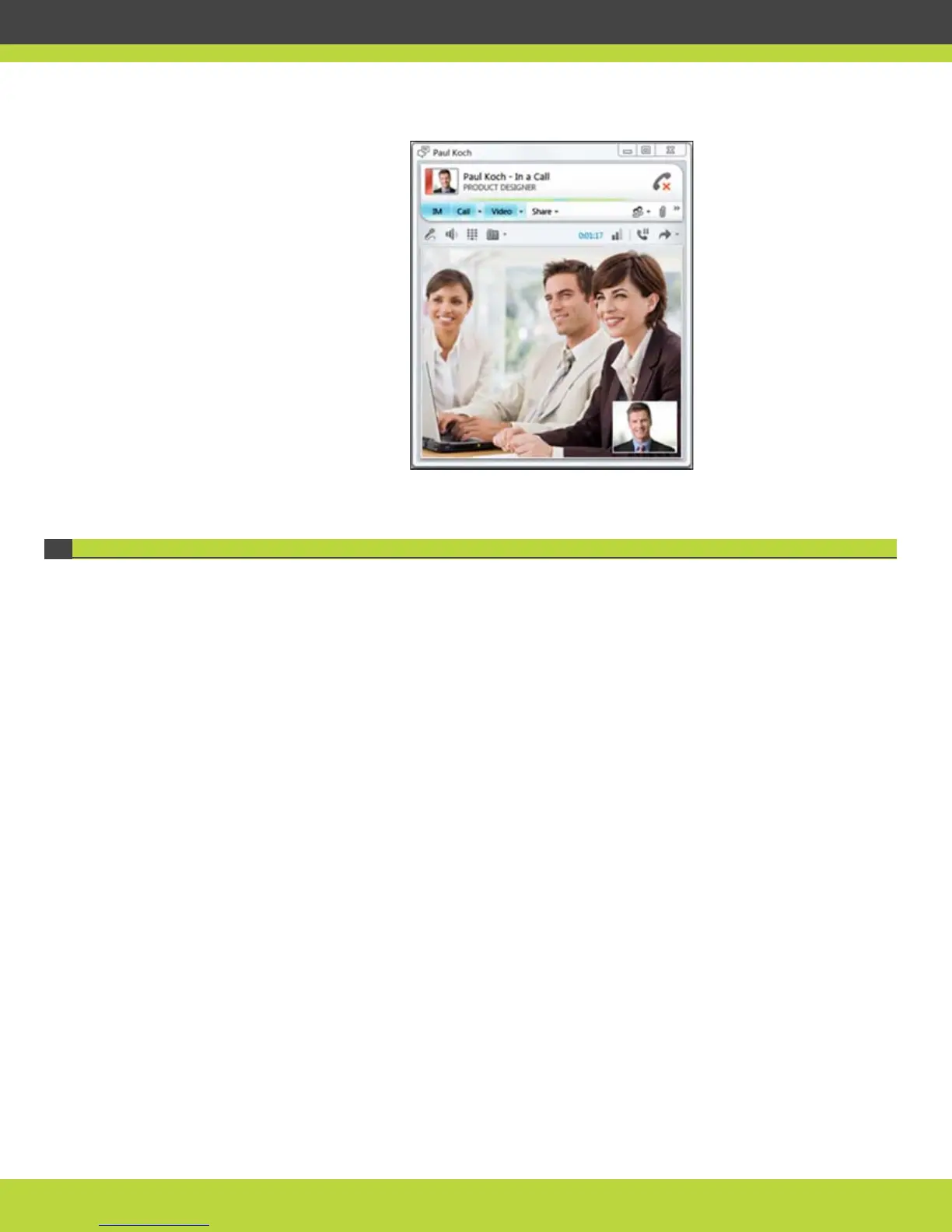 Figure 1-13 The Lync Client window showing video from the meeting room
