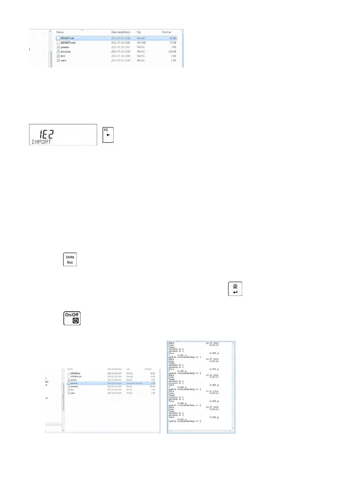 • Press button to switch the balance off, next remove the pendrive from the port and read
