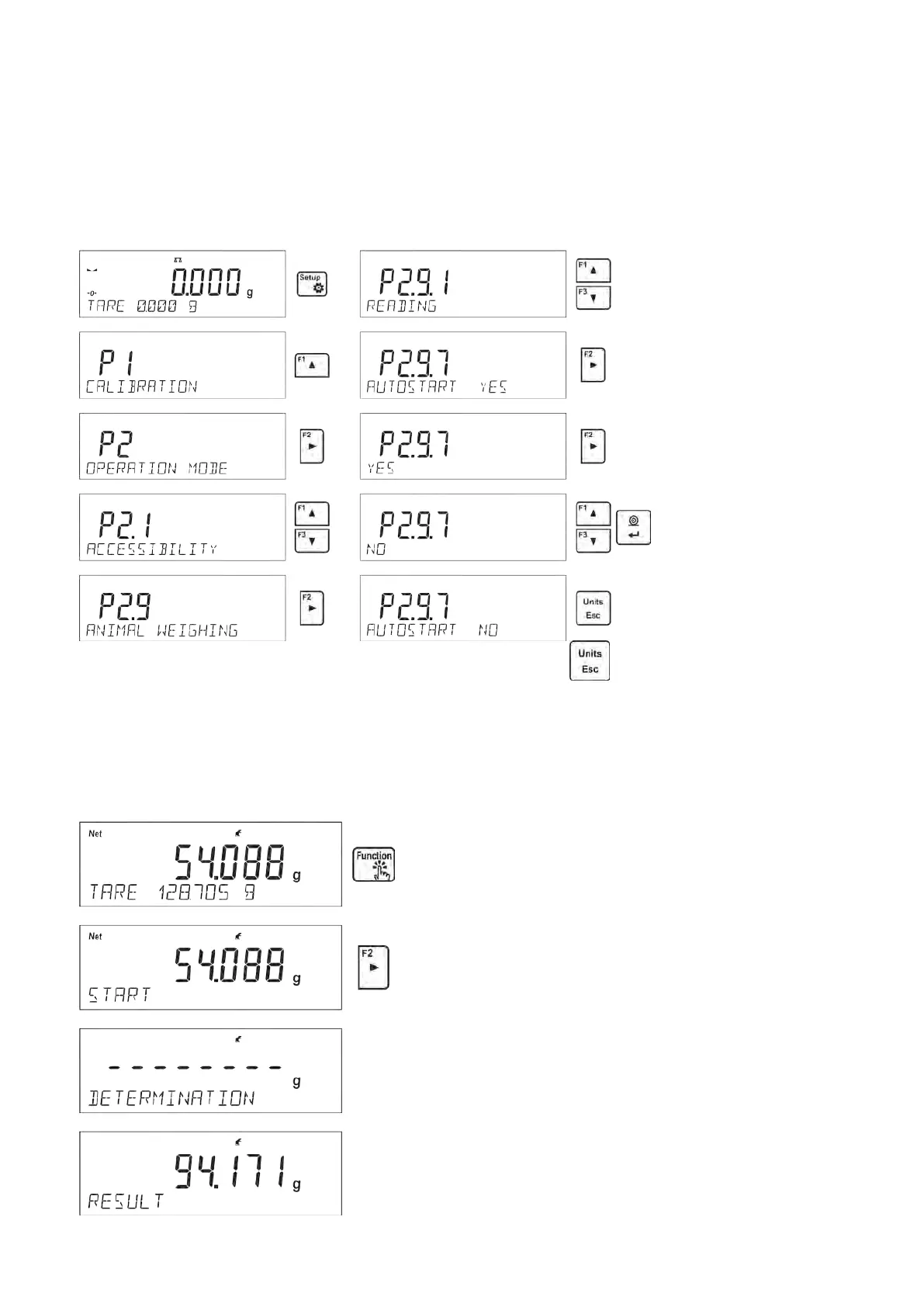 You can declare which particular weighing function is to be launched using F1, F2, F3 or F4 keys.