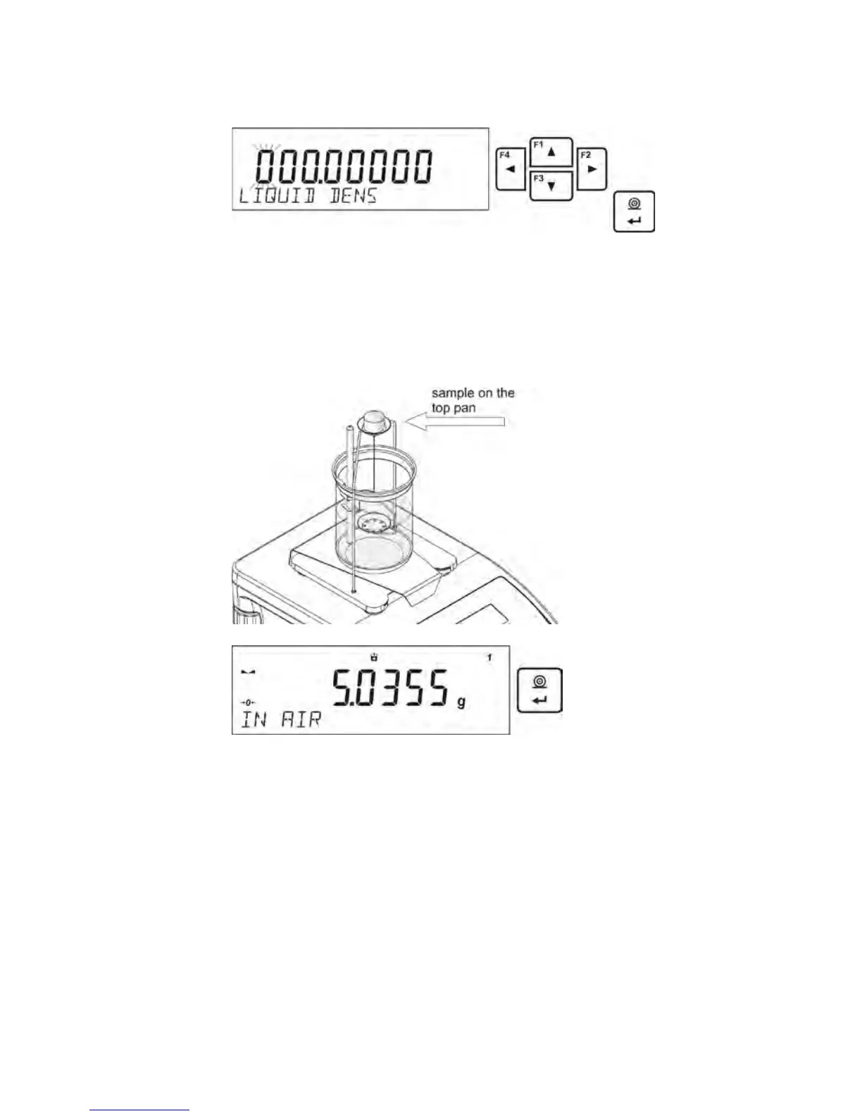(mass determination in the liquid), and after the indication
