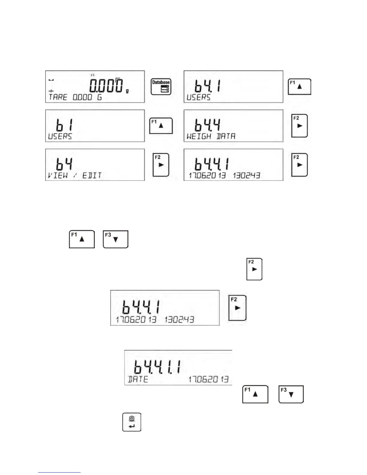 To move through the saved measurements database, use the arrow