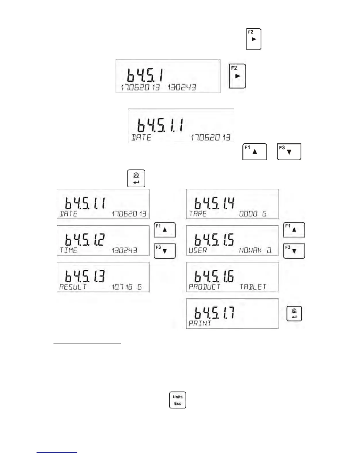 The data relating to the measurement can be printed out by selecting the option