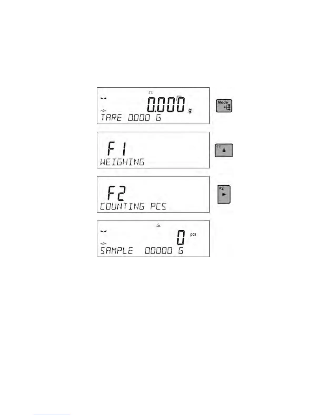 <COUNTING PIECES> then the software accepts the mass of recently used