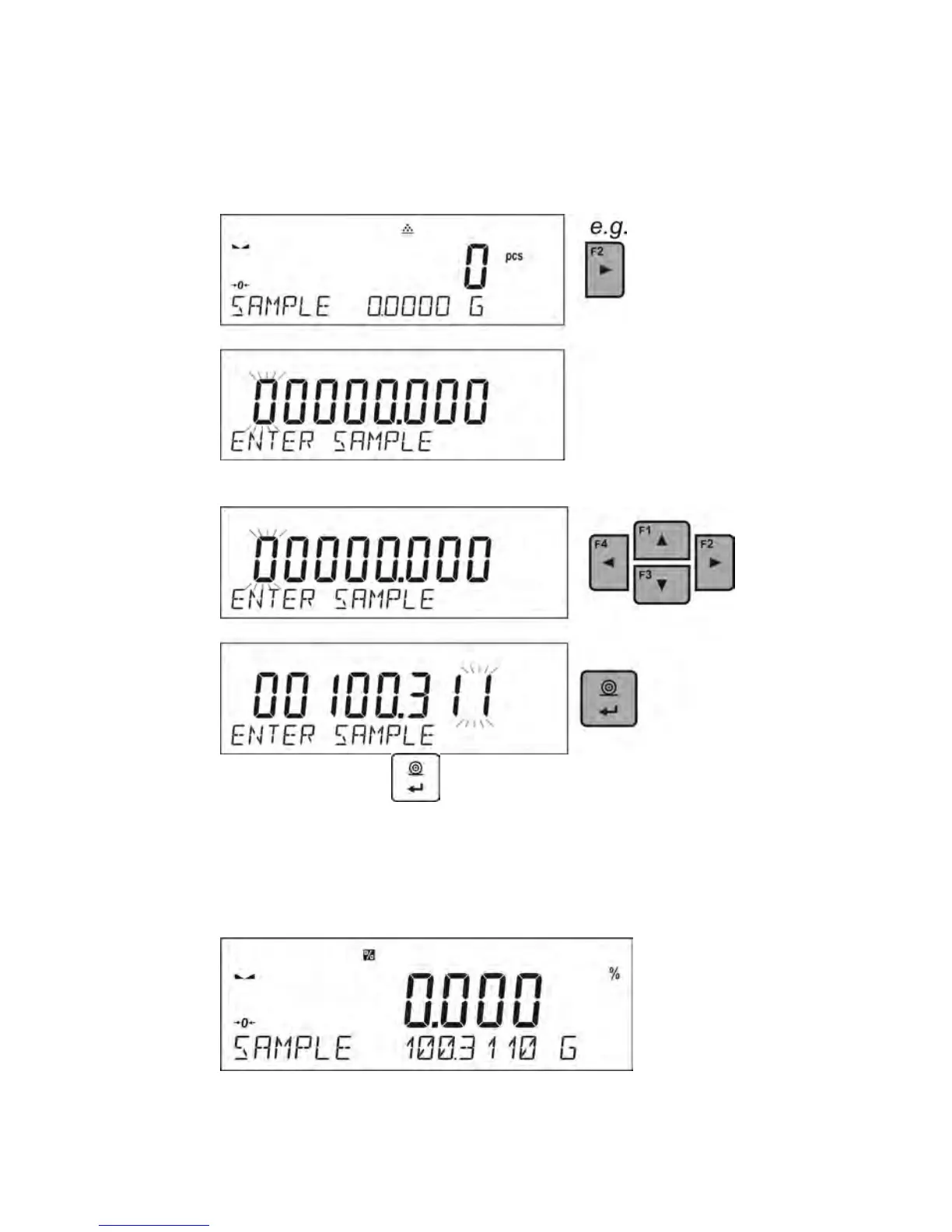 Press one of the F buttons to which the function <ENTER SAMPLE> is
