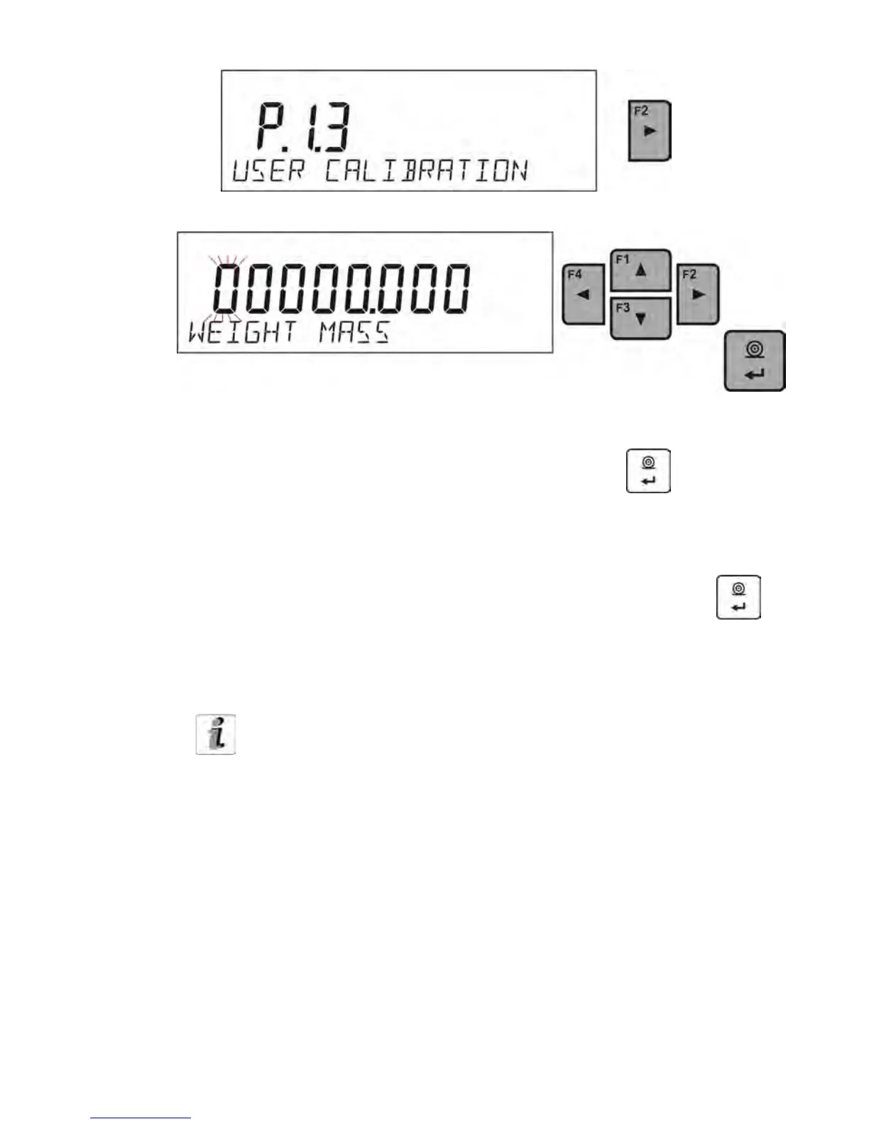 Next, message <PLACE MASS>is displayed in the bottom bar, and in the