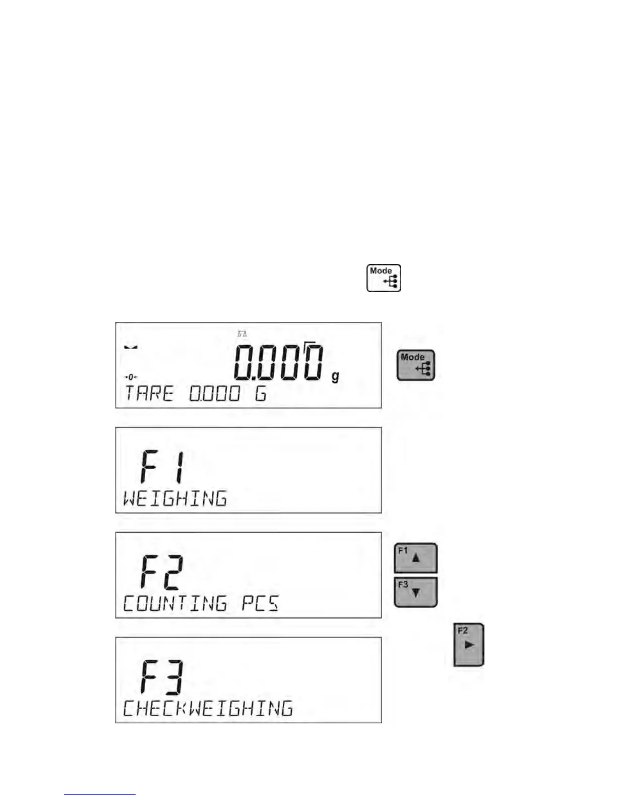 In order to initiate a particular mode press