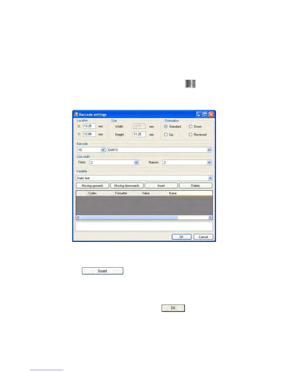 10. In order to add a barcode to the label chose < Barcode> and
