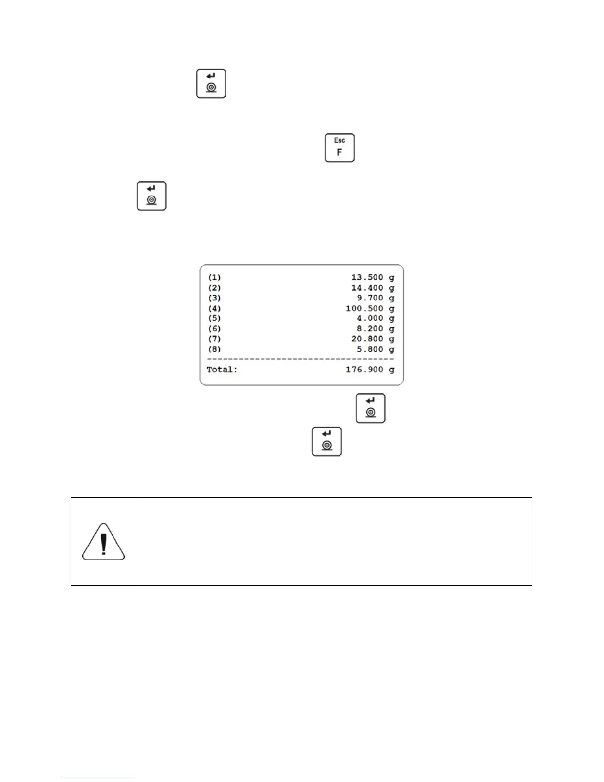• Total mass value of ingredient no. 1 and 2 is displayed, now the „▲”