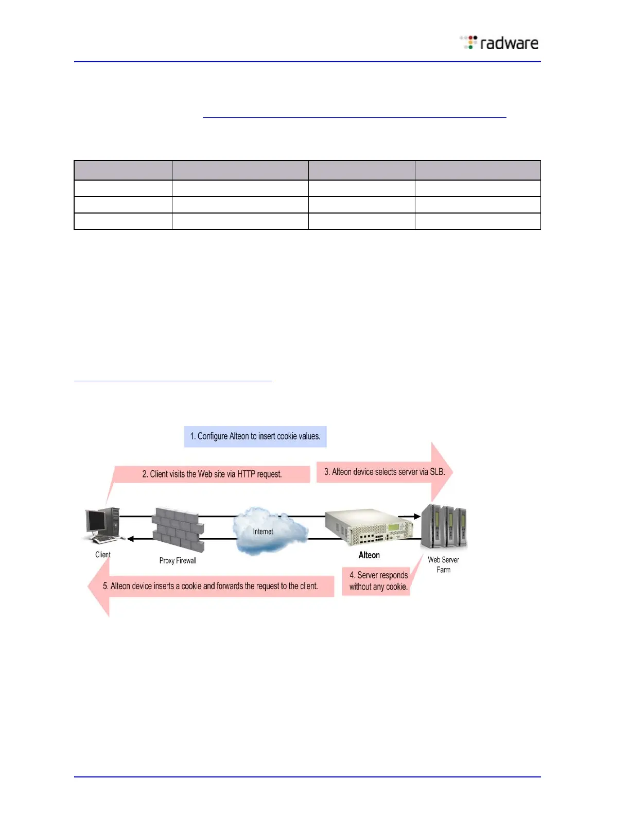 In the insert cookie mode, Alteon generates the cookie value on behalf of the server. Because no