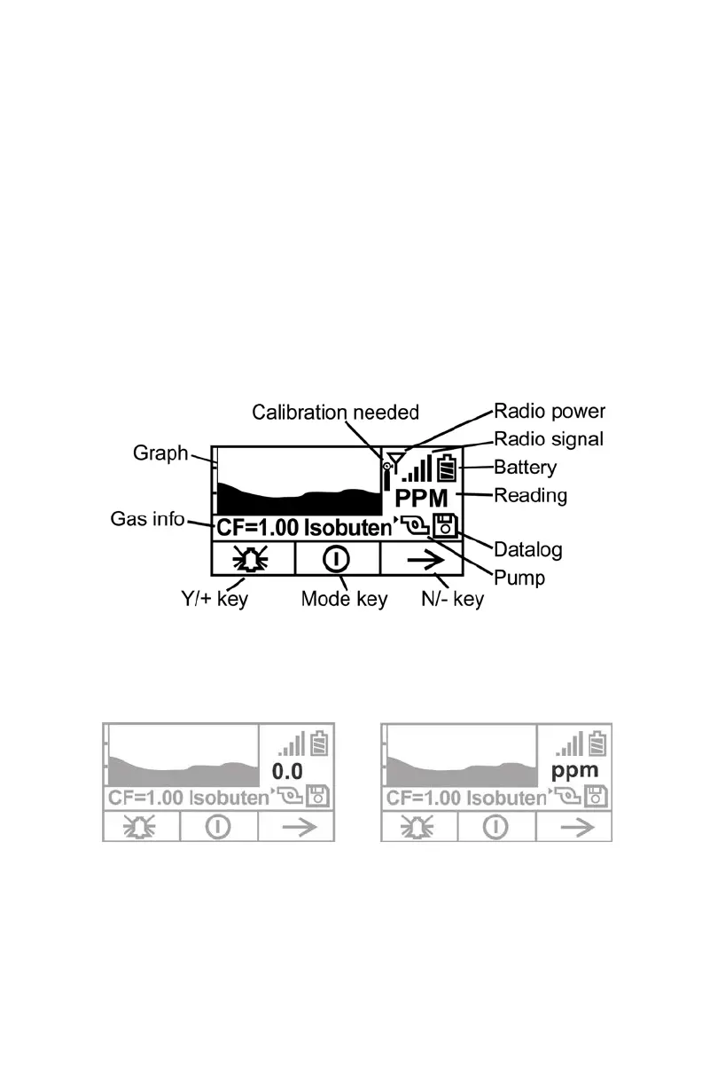 During sampling, the display’s readings are shown numerically, plus