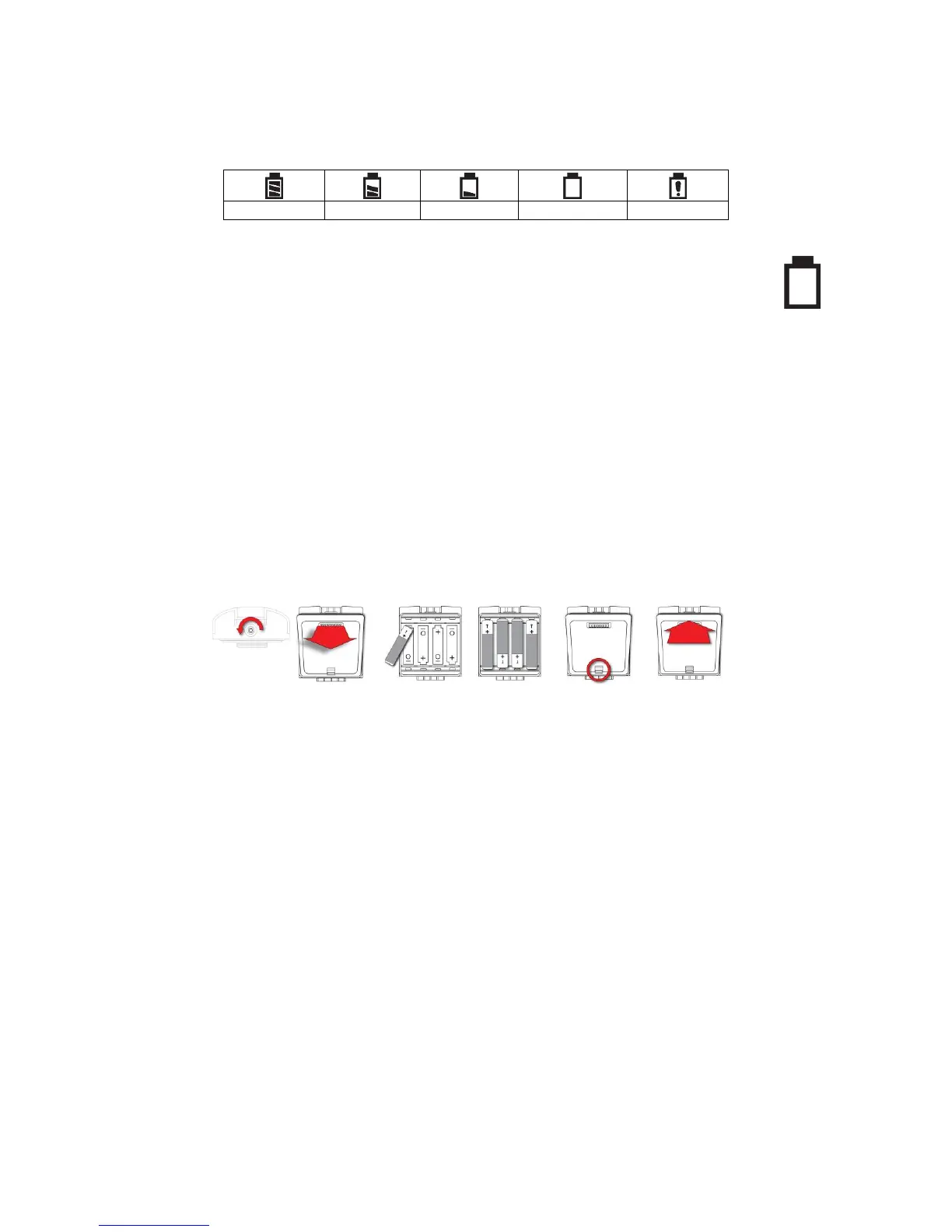 once and flashing once every minute, and the “empty battery” icon blinks on and off once per