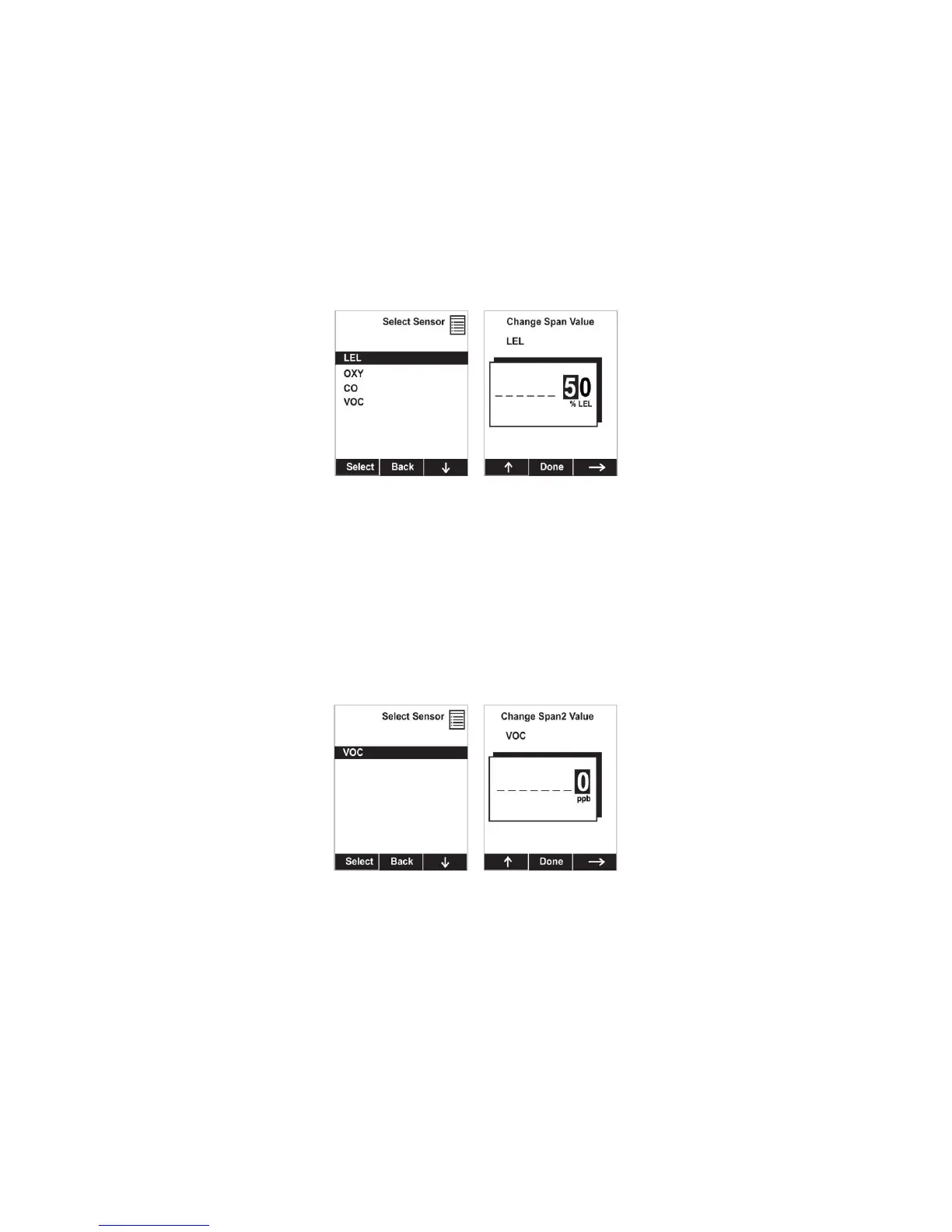 You can individually set the span gas concentration for each sensor. This concentration setting will also