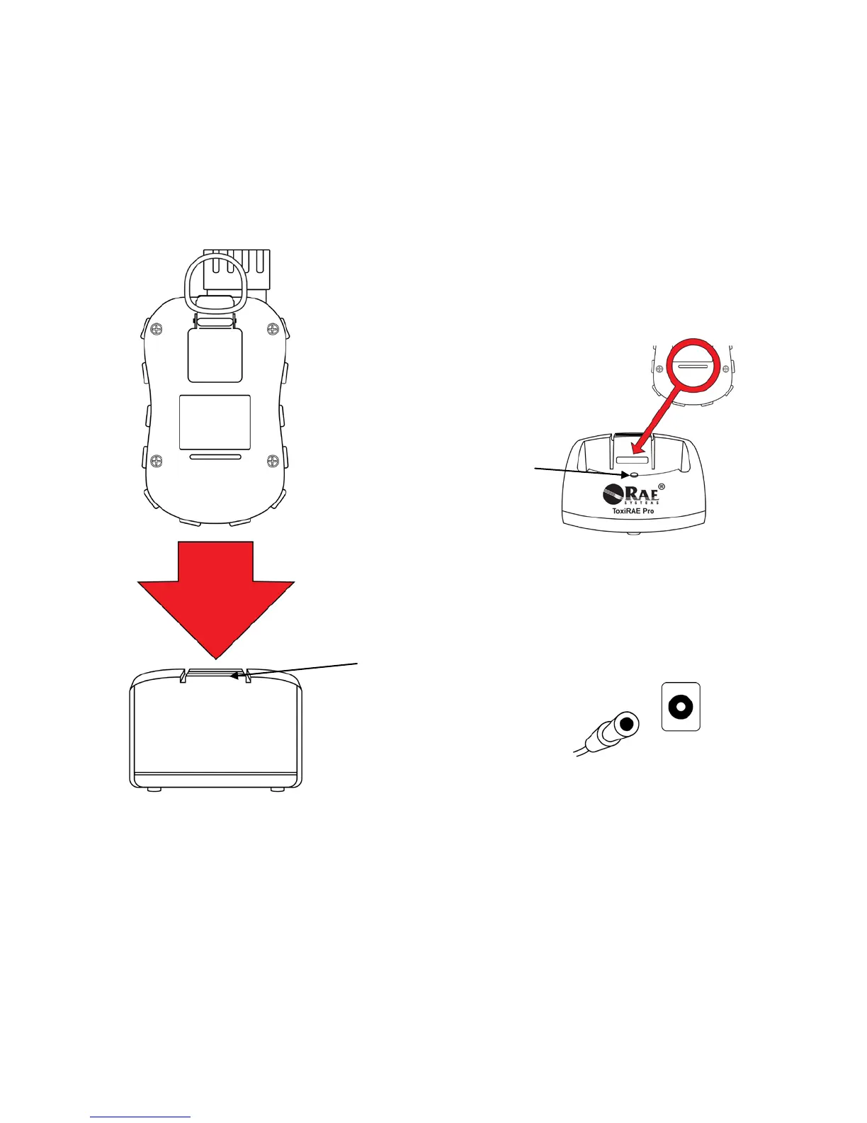 Note: Before setting the ToxiRAE Pro into its charging cradle, visually inspect the