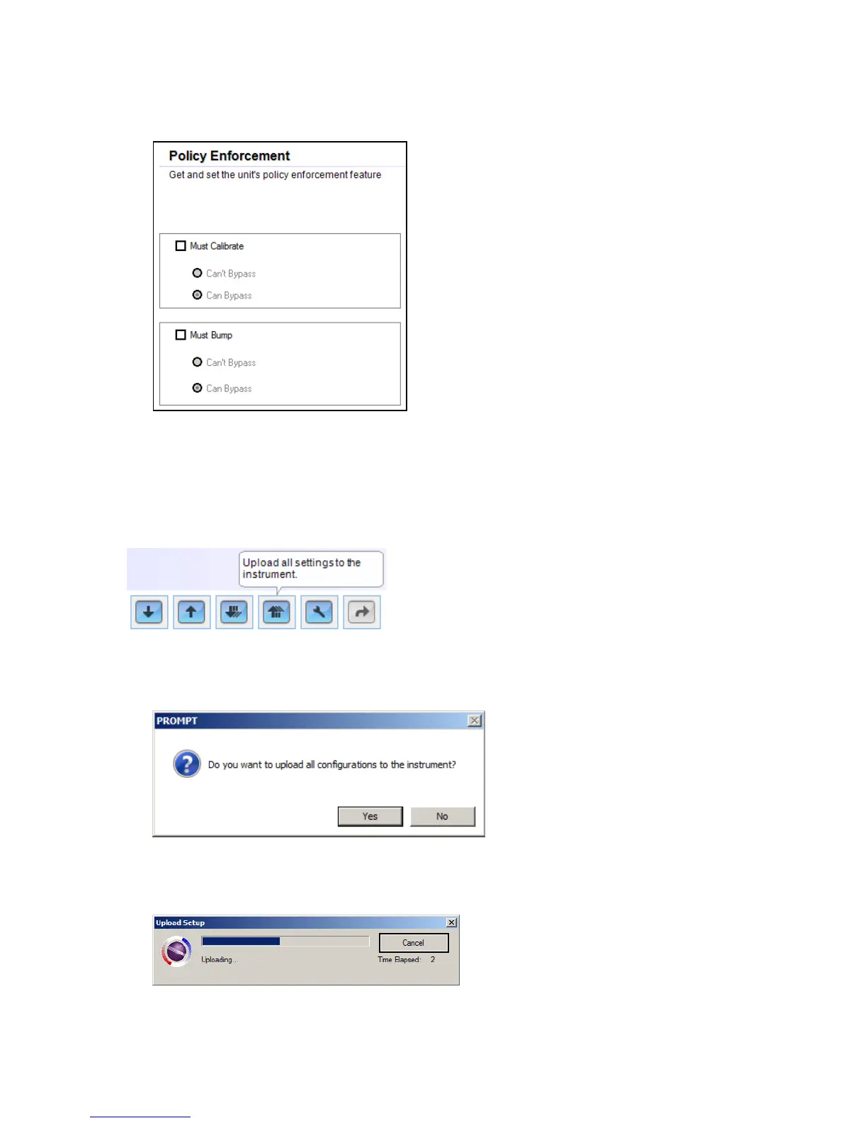 changes to the instrument. Click the icon labeled “Upload all settings to the