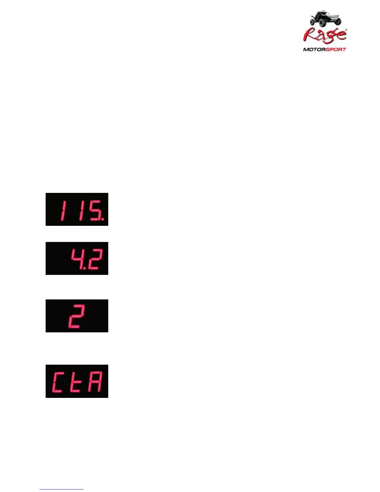 • The centre RED, 3-digit LED display shows the following parameters RPM,
