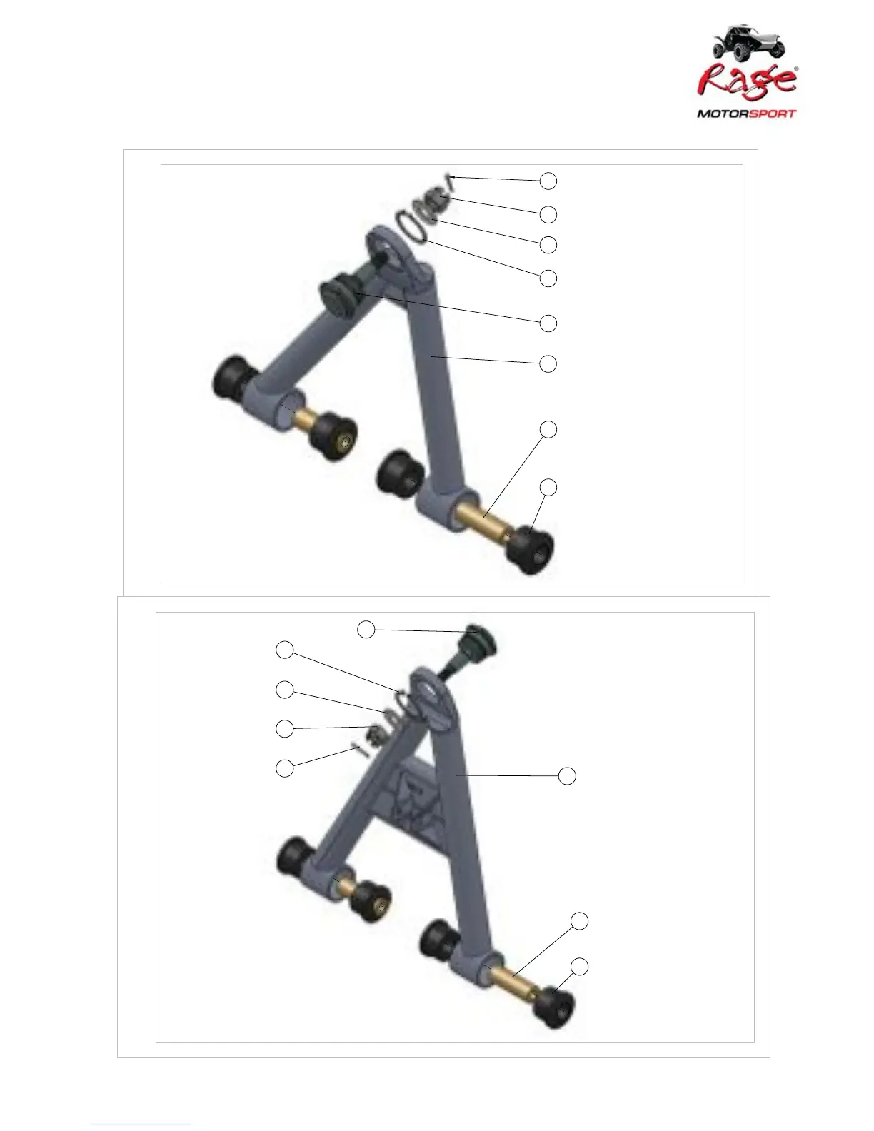 Rage Comet - Front Running Gear Exploded View Diagrams; Front Upper Control Arm Components; Front Lower Control Arm Components
