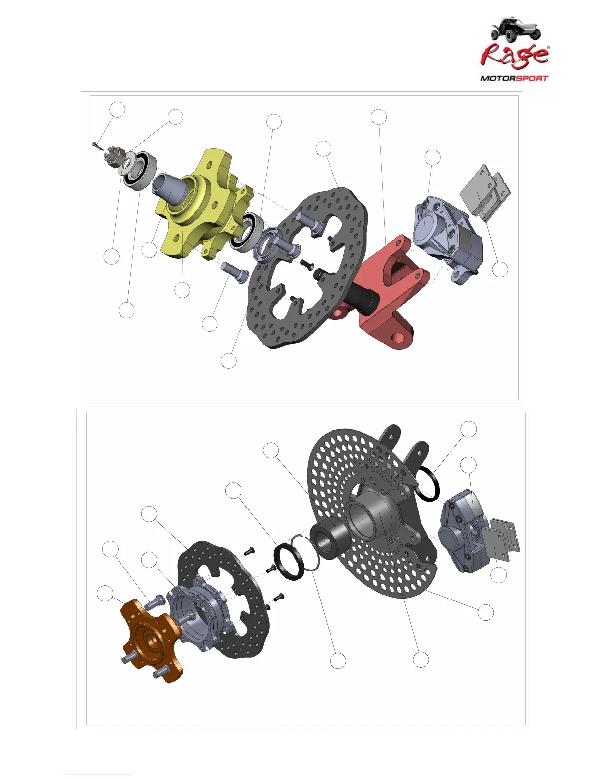 Rage Comet - Wheel Hub and Upright Assembly Diagrams; Front Upright Assembly Parts; Rear Upright Assembly Parts