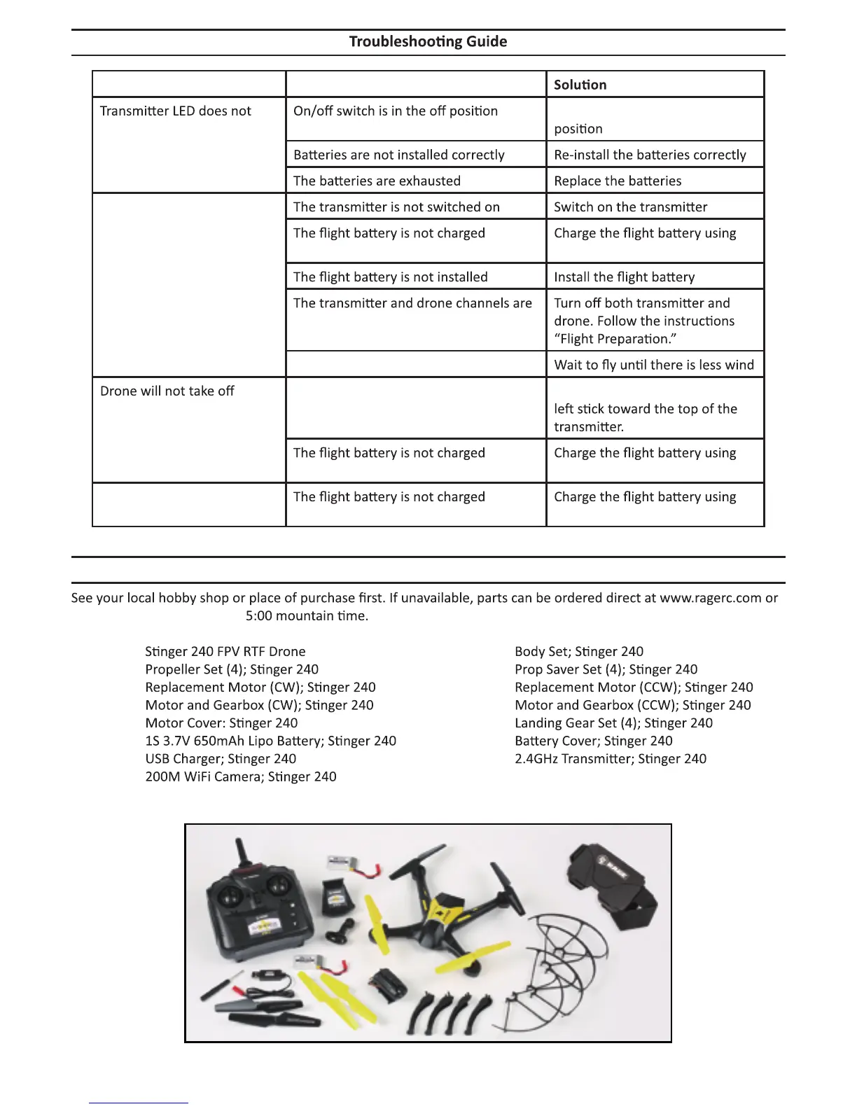 Rage stinger 240 - Troubleshooting Guide; Spare Parts