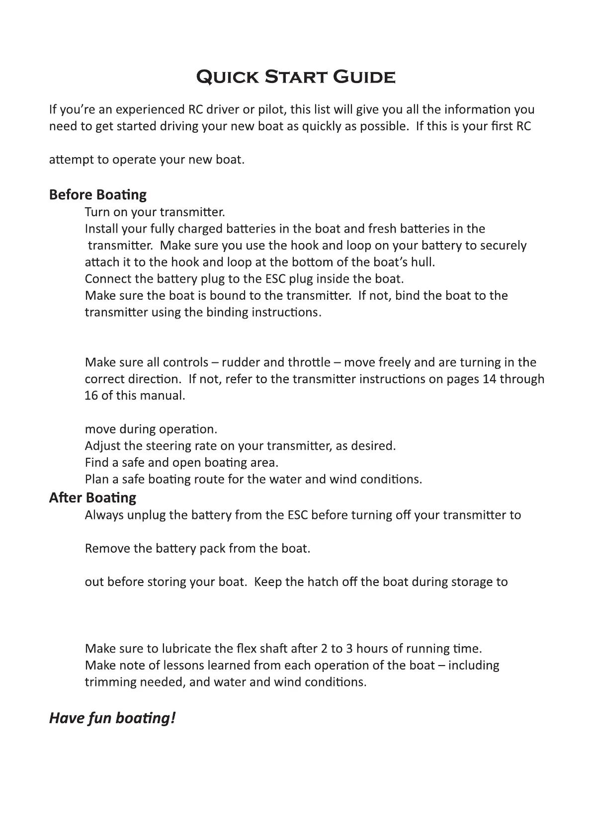3. Mae sure the outside of the boat and inside of the hull are complet