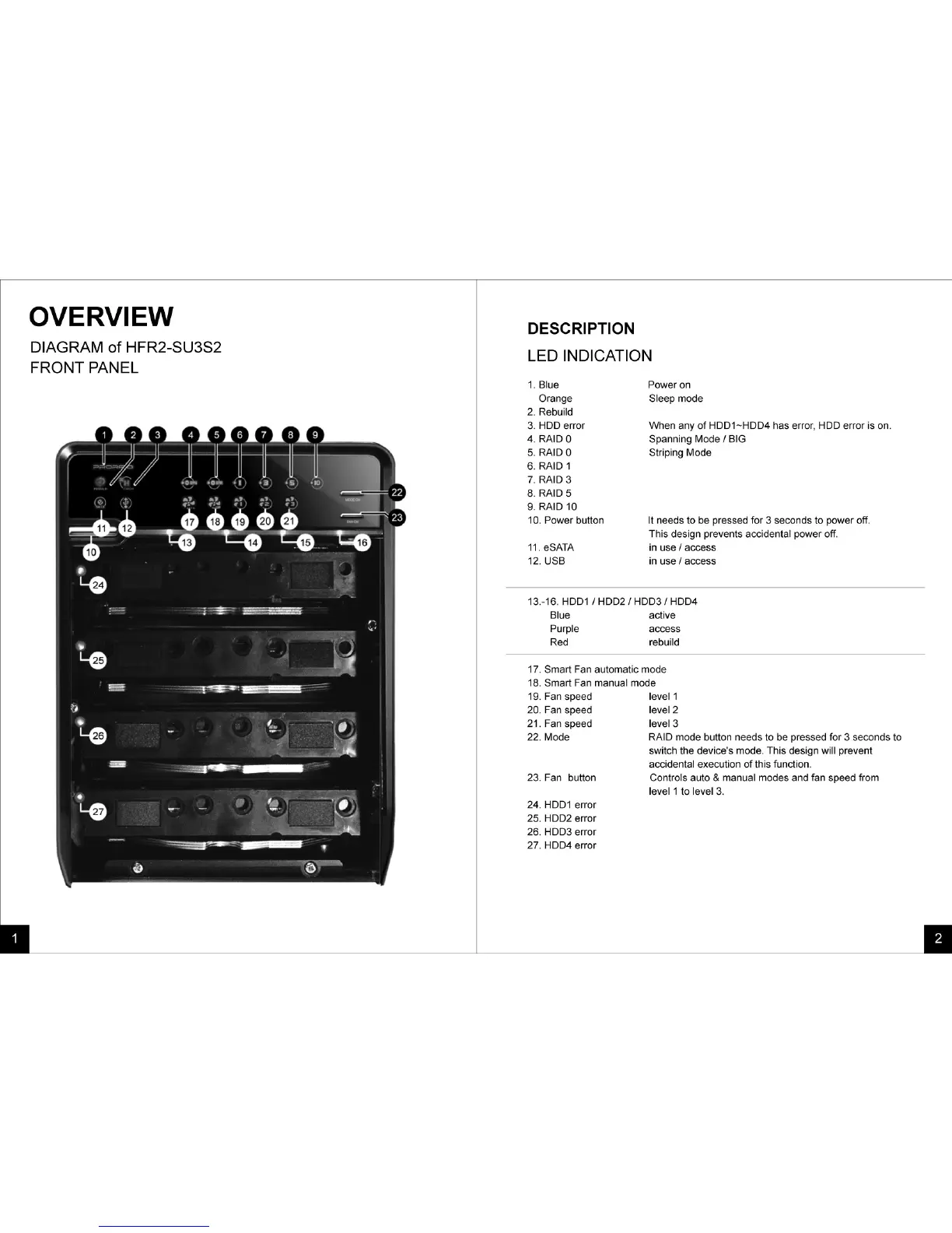 RAID 4-Bay - Overview; LED Indication