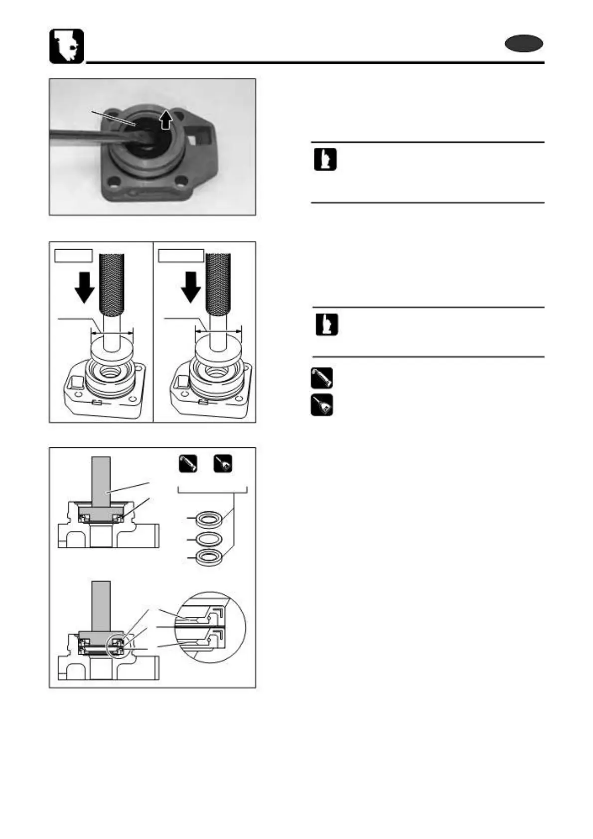 1. Install oil seal 1 and shim 2 by using suitable press 3