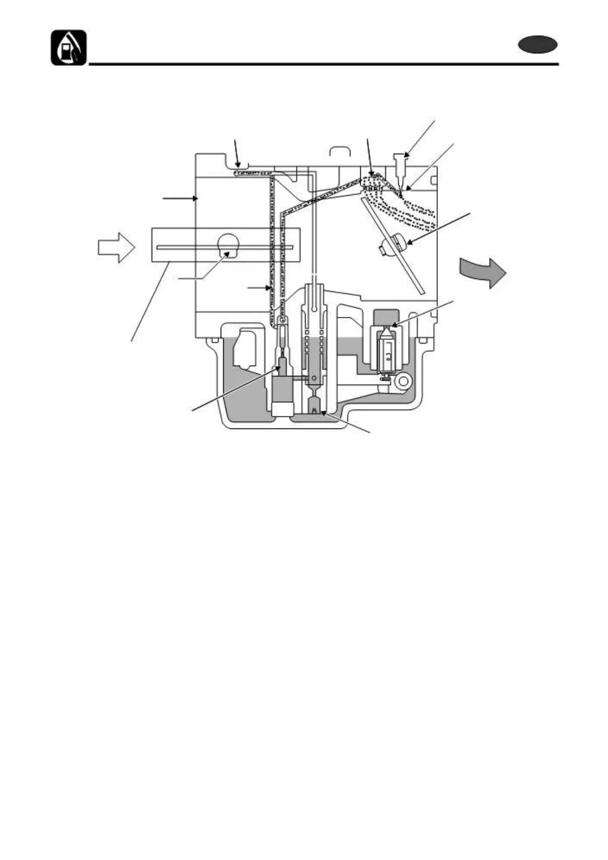 back of throttle valve. The vacuous pressure causes the fuel to be ejected from bypass port and idle port.
