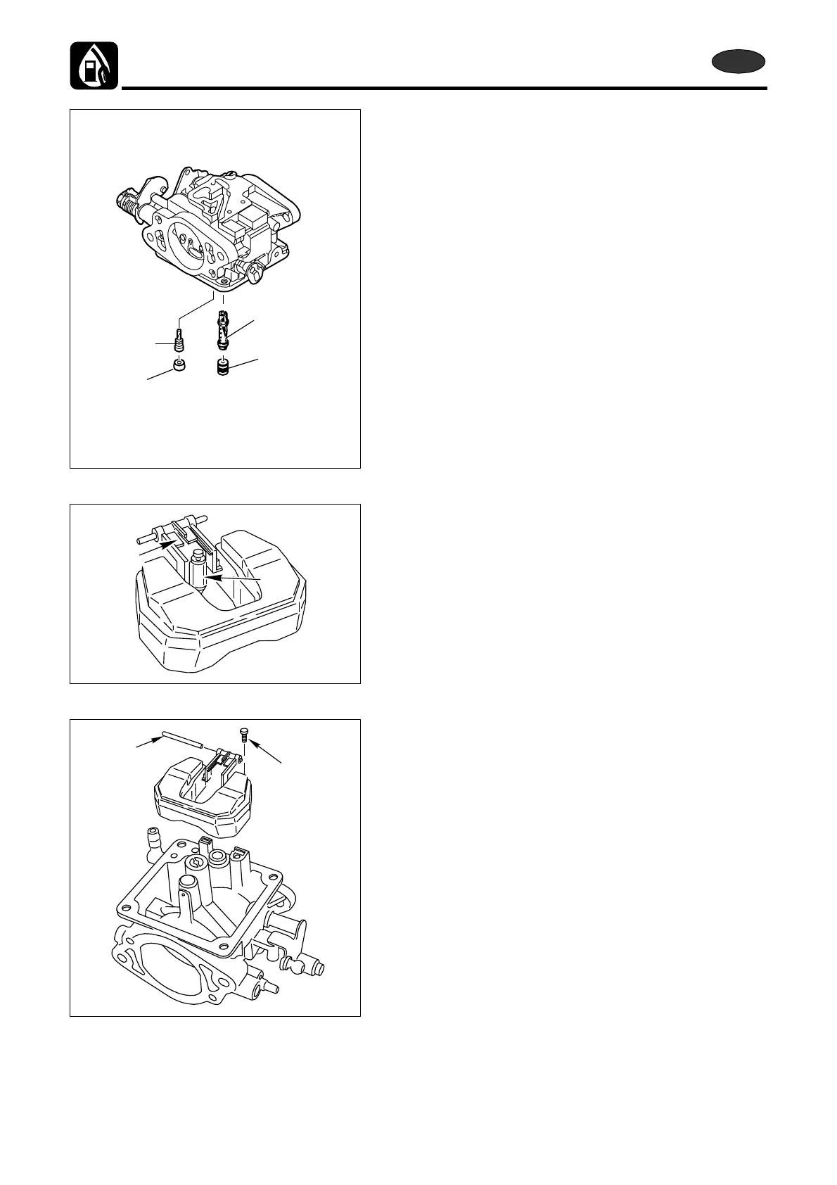 3. Attach float ass’y with float arm pin 7 and secure with screw