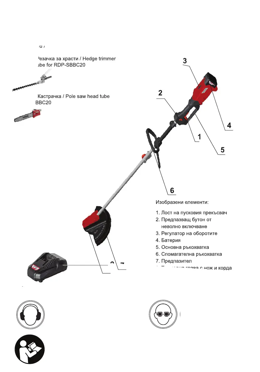 Подходящи аксесоари за акумулаторна коса с нож и корда RDP-SBBC20: