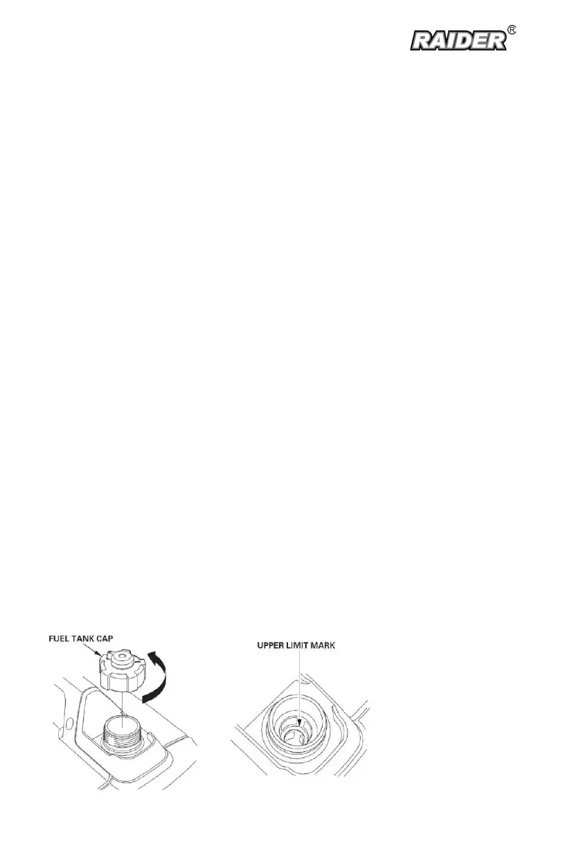 ■ Do not overll the fuel tank (there should be no fuel above the upper limit mark).