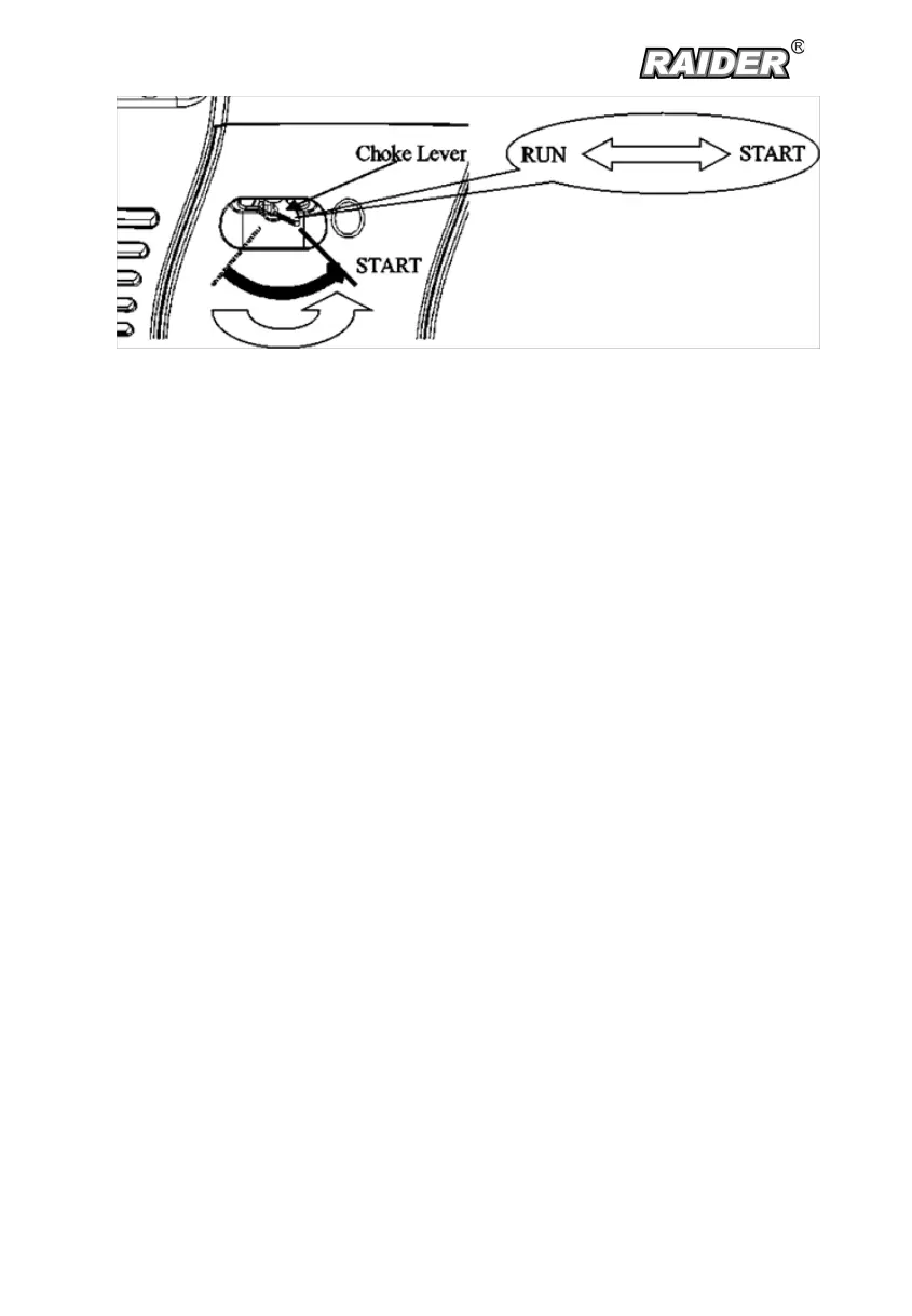5.Move the choke lever to the “RUN” position after the engine warms up.
