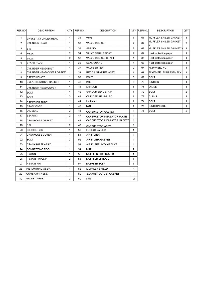 Raider RD-GG10 - Engine Parts List; Engine Component Breakdown