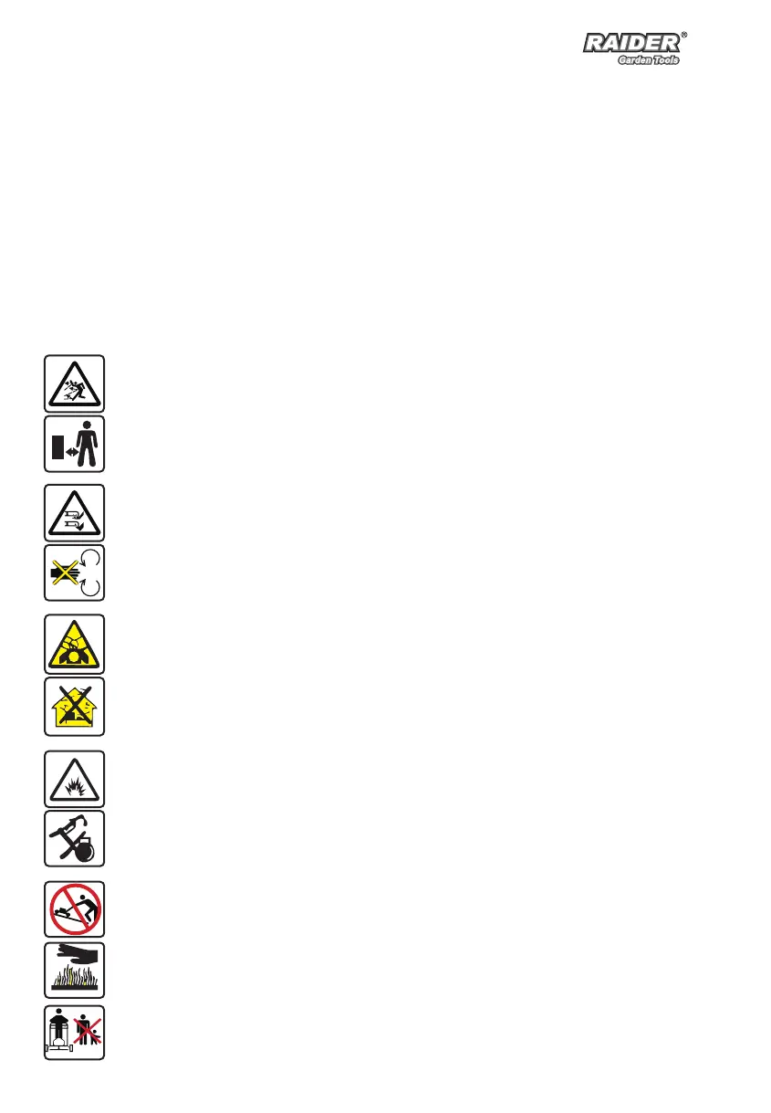 WARNING! There is a risk that stones and other objects could be thrown out by the lawnmower. Always keep