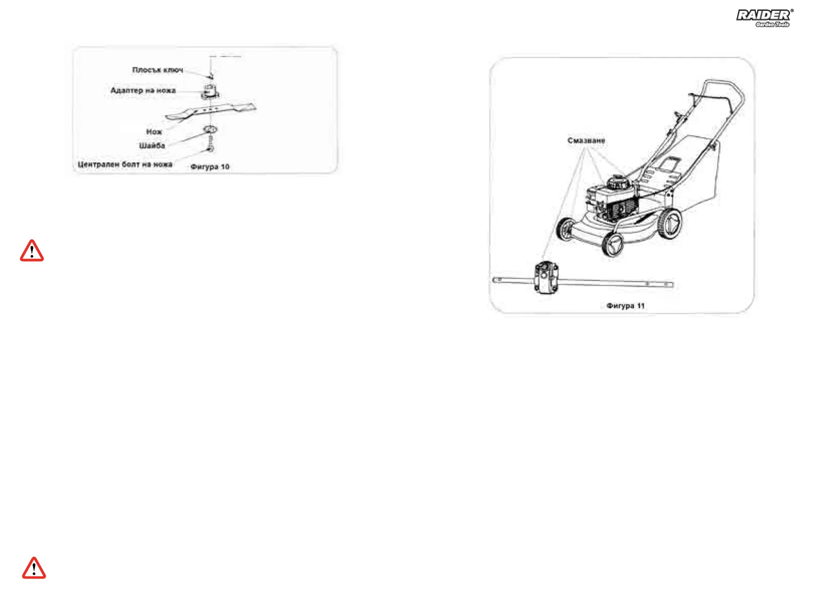 на двигателя. Покрийте ножа на косачката с тънък слой грес за предотвратяване на корозия.