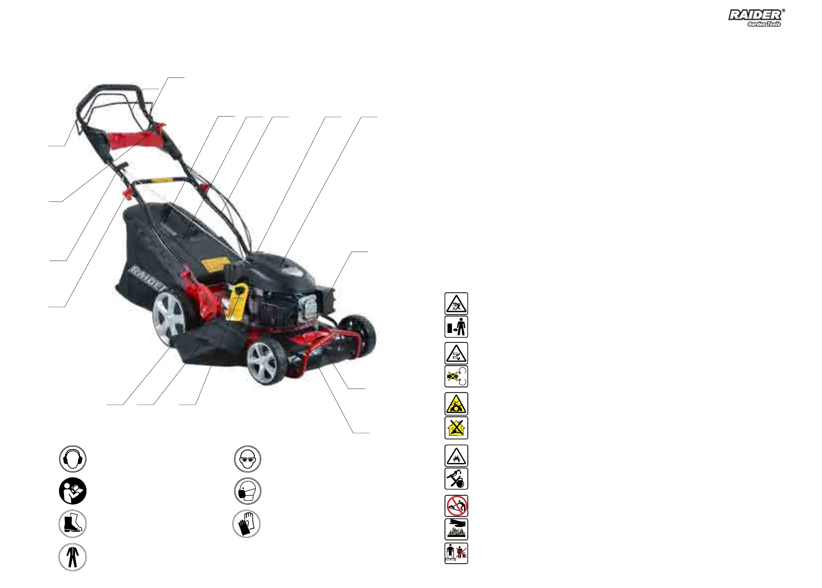 WARNING! There is a risk that stones and other objects could be thrown out by the lawnmower. Always keep other people, children and all domestic