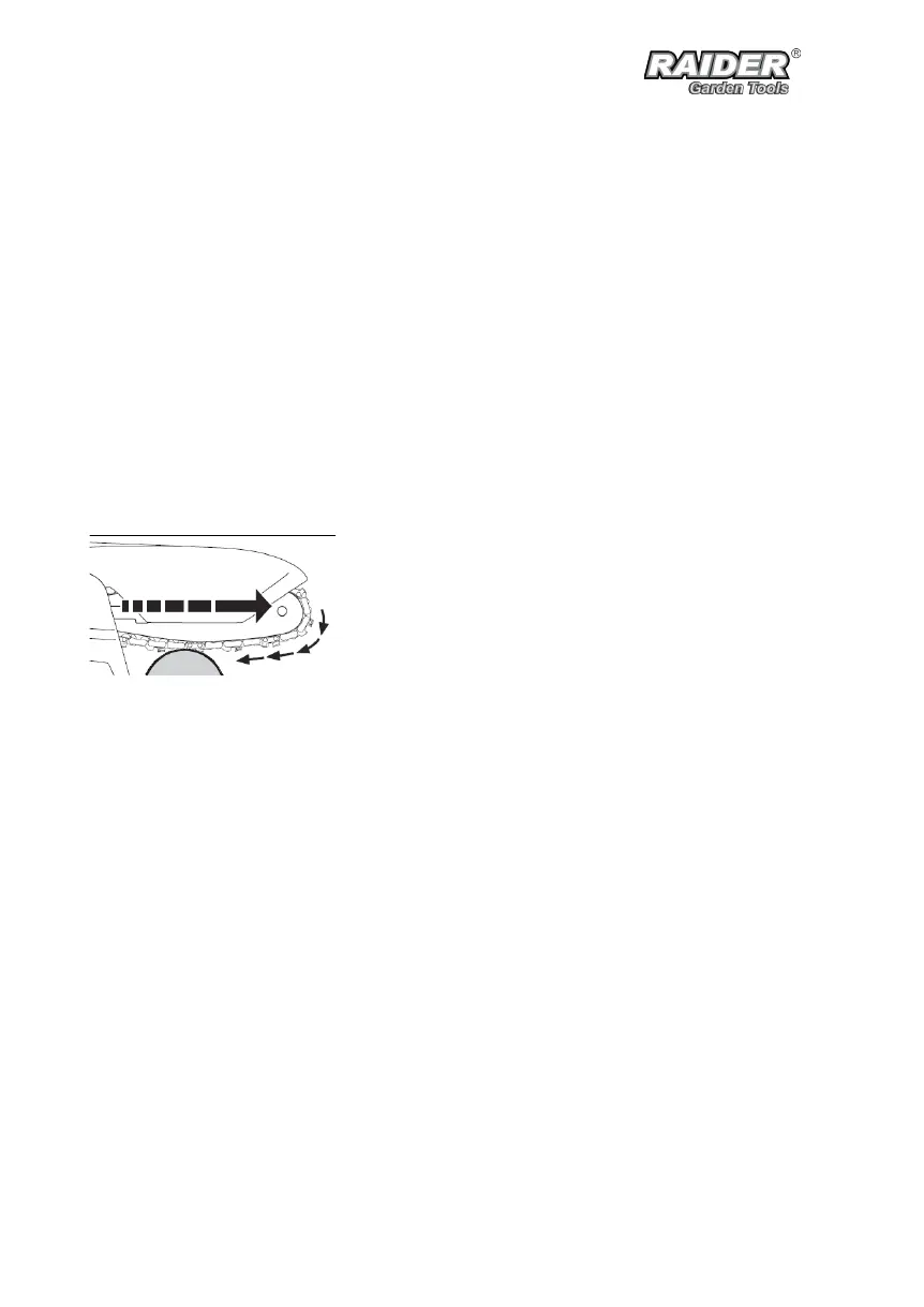 za podešavanje lanca u donjoj rupi šine. Zategnite lanac za sečenje testere / položaj 6 prikazanih elemenata /. Merenje