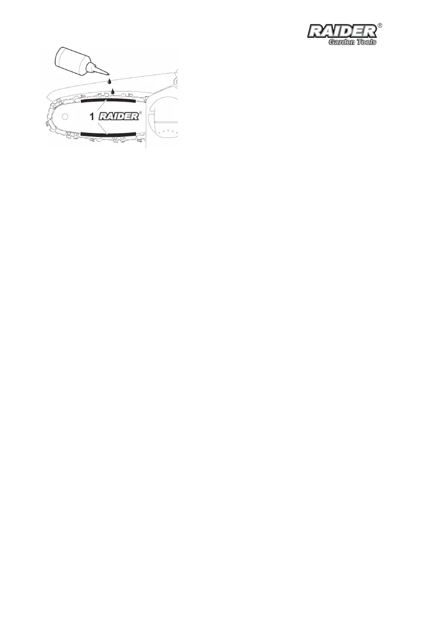 -Нанесете мултифункционално масло в областта (1) между направляващата шина и режещата верига.
