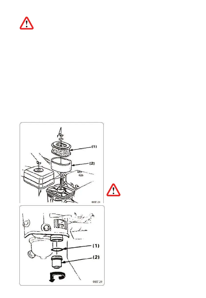 2. Гъбест елемент при сух въздушен филтър (поз. 2, фиг. 28): Почистете в топла