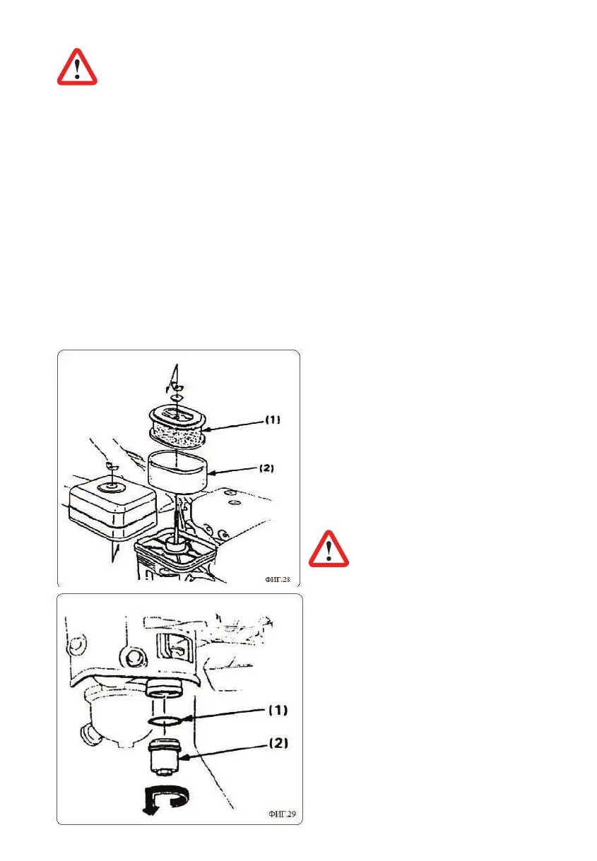 2. Гъбест елемент при сух въздушен филтър (поз. 2, фиг. 28): Почистете в топла