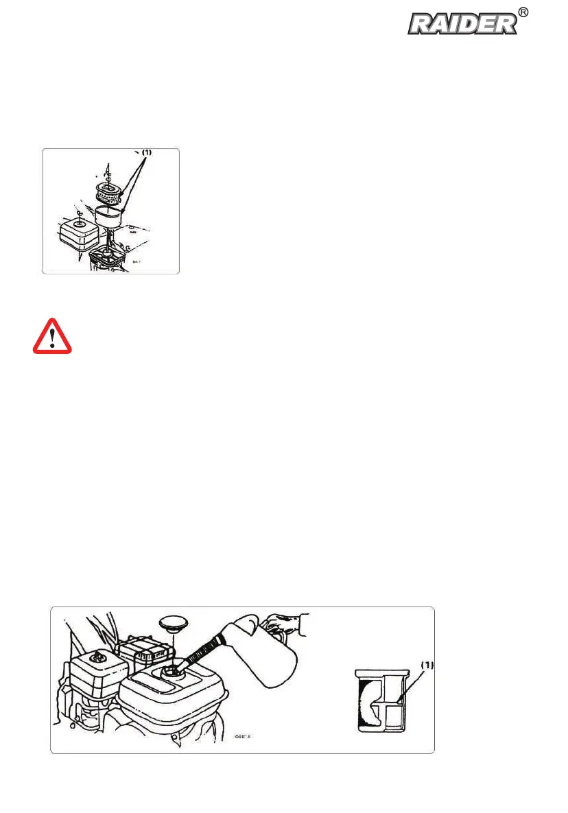 Преди работа напълнете въздушния филтер с двигателно масло до указаното ниво.