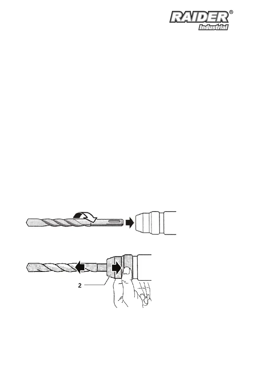 4.2. Metante la taladro en la kukon. Forĵetu la potencon de martelo. Por martelo baladado kaj ĉuado, SDS-plusaj iloj