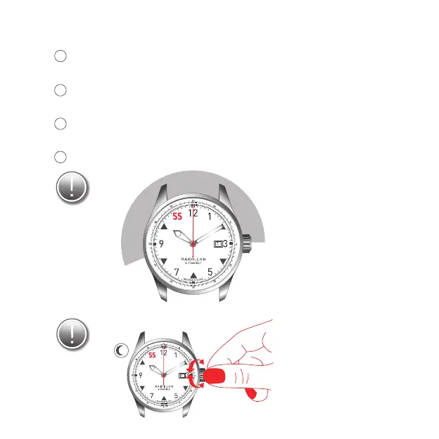 Repoussez la couronne et vissez-la vers l’avant jusqu’à atteindre la