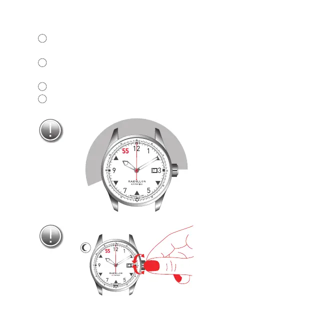 Stel de datum in door de kroon vooruit te draaien om de datum te
