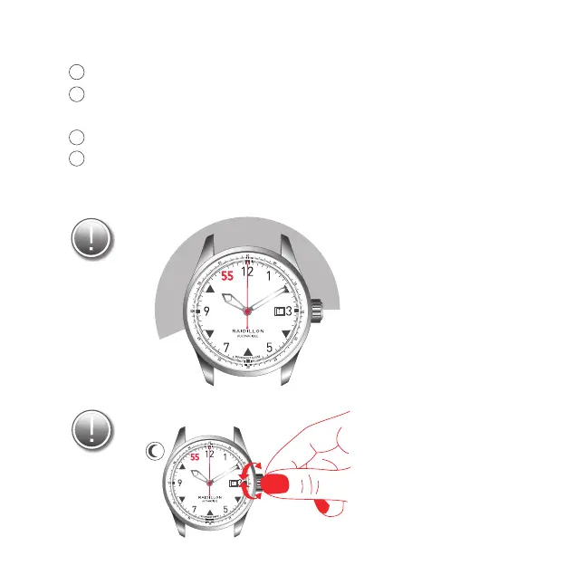 按背离自己的方向将表冠旋松,并将其设置在位置 (2)
