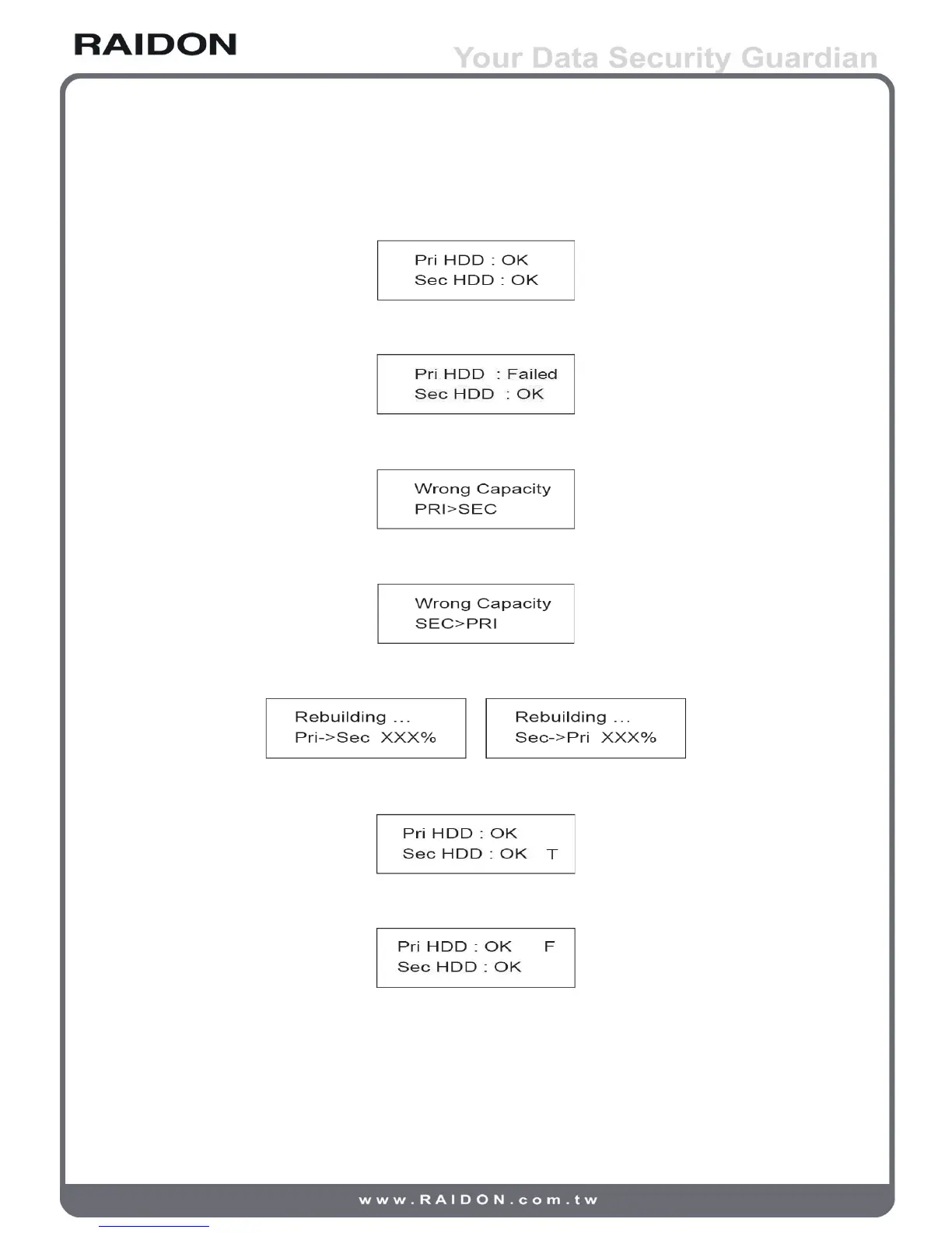 Raidon iR2620-2S-S2 - Chapter 8 Hard Disk Status on LCD Screen