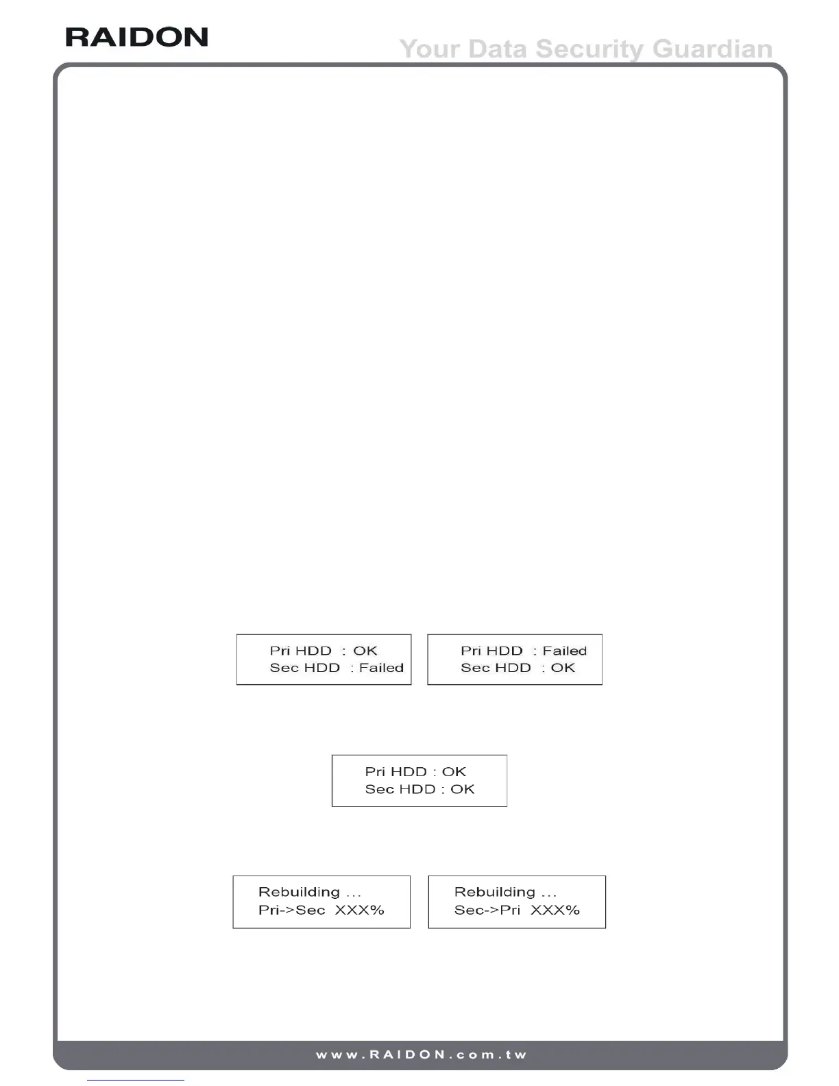 3. The LCD Display Message During Hot Swap and Auto Rebuilding