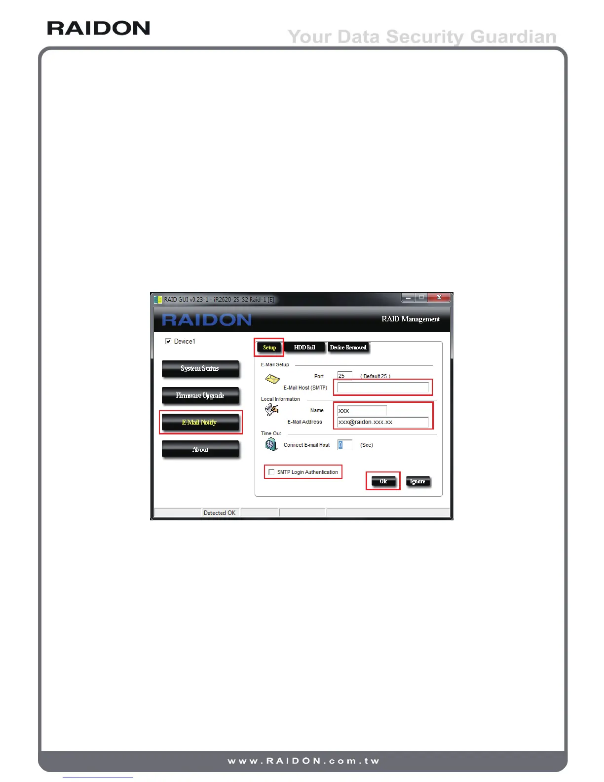 Conguring an e-mail address for notication of drive malfunctioning or being removed.