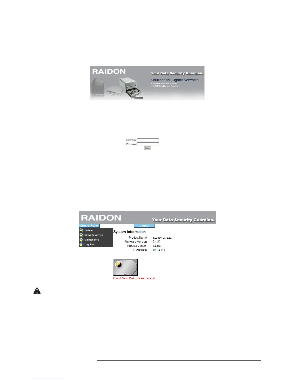 NOTE: After login, the system will detect the hard disk automatically. If the hard disk installed is a new