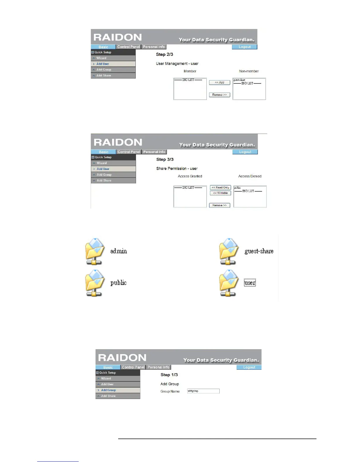 Once the shared folder is set, you can nd the exclusive folder of the newly added user on Net