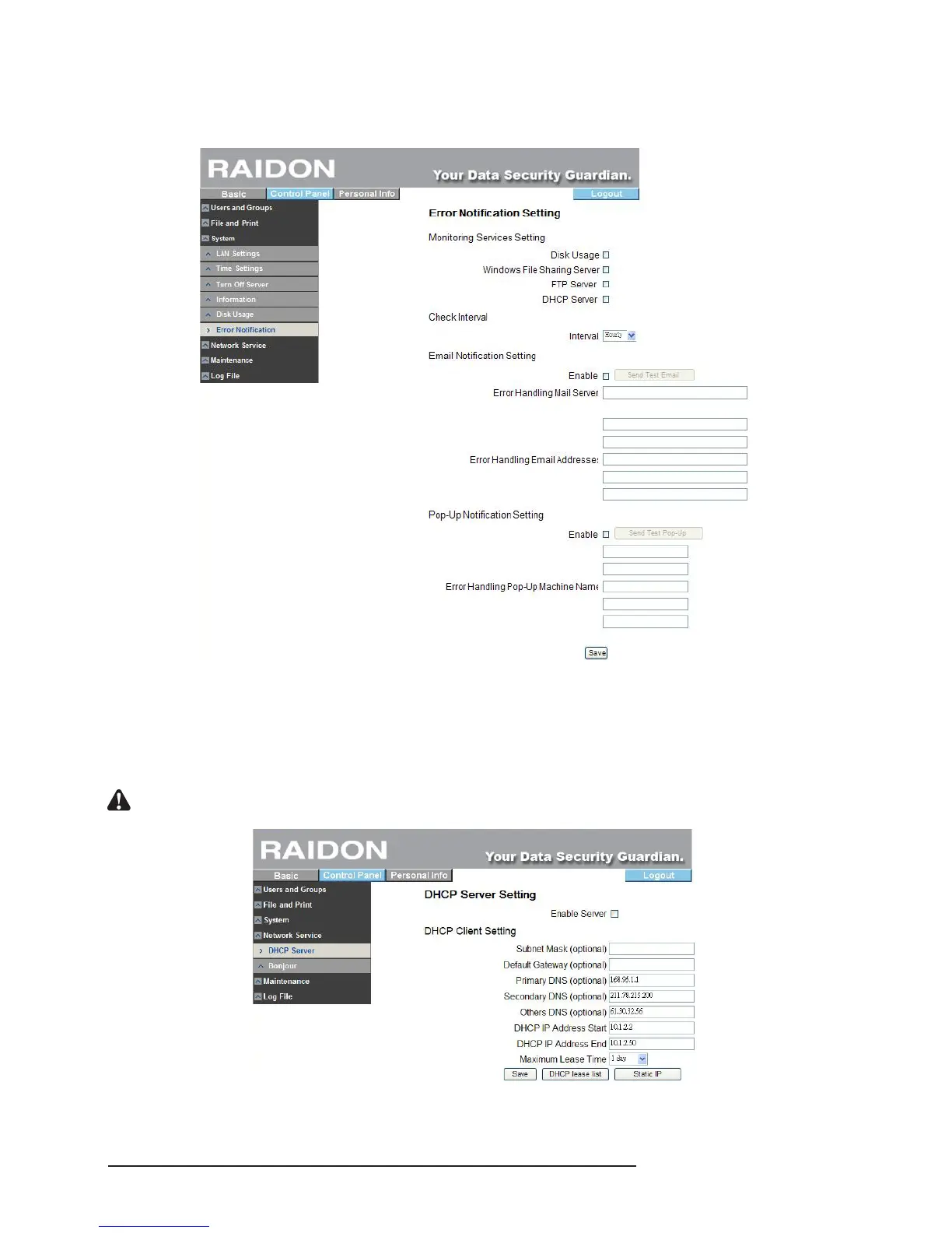 Raidon SL3610-2S-LB2 - Network Service; DHCP Server