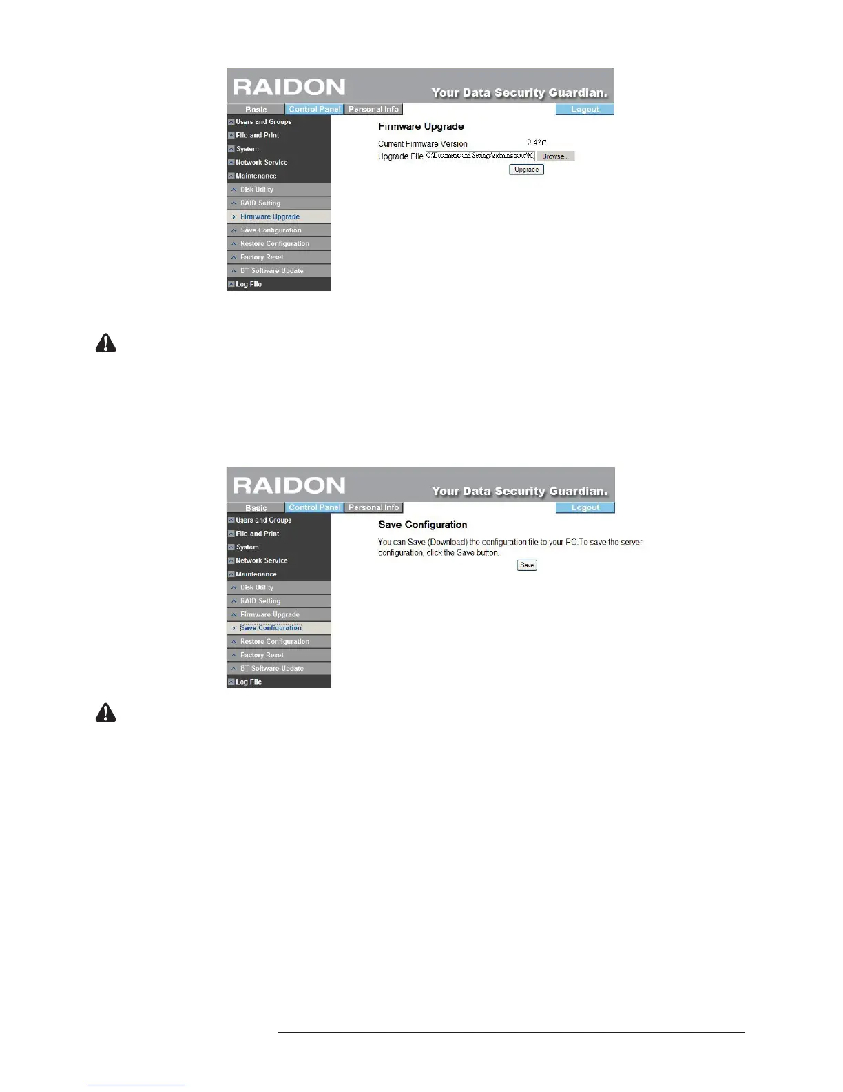 This function can save the present system conguration le and save it in the hard disk. The le